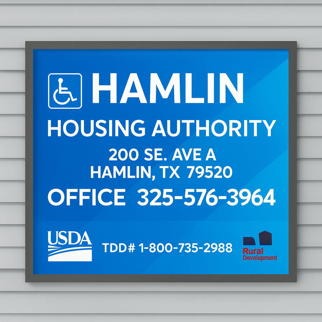 The Hamlin Housing Authority serves low-income families, elderly persons (62 years or older), and persons with disabilities. Eligibility is based on annual gross income, family size, and citizenship or eligible immigration status. We encourage all qualified individuals and families in need of affordable housing assistance in Hamlin, Jones County, and surrounding West Texas communities to apply..